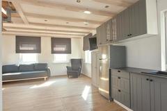 - otwarta przestrzeń z wyjściem na balkon ( ok. 3m2), mogąca służyć jako sypialnia jak również miejsce do pracy.