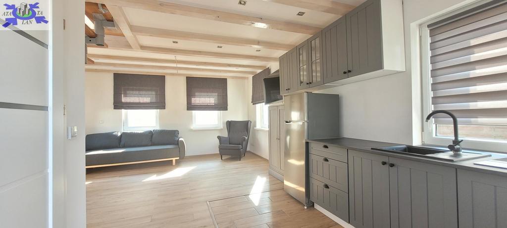 Domek świeżo wykończony i wyposażony w nowe meble i sprzęty. Na podłodze w części dziennej oraz na poziomie I - panele. W cześci kuchennej oraz łazience terakota.