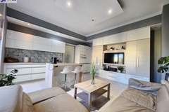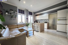 - Salon z aneksem kuchennym i wyjściem na mały balkon.