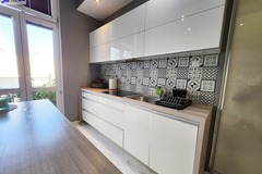 Nowoczesna kuchnia z meblami w zabudowie.