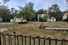 Teren położony w śród drzew jednocześnie blisko centrum handlowo usługowego miasta, szkół i przedszkoli