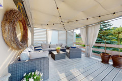 Część mieszkalna jest nietuzinkową i zjawiskową nieruchomością w której dominuje drewno w różnych jego odsłonach. Użyte do wykończenia materiały są wyselekcjonowane a meble przeważnie wykonane na wymiar. Duszą i centralnym miejscem domu jest jadalnia z otwartą kuchni, gdzie spotykają się domownicy. Do relaksu służą salon i duży, zadaszony taras. Ostatni poziom jest prywatną przestrzenią właścicieli.