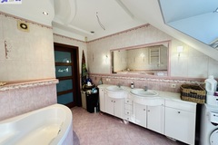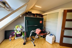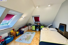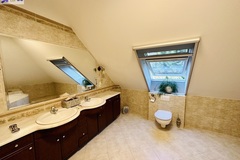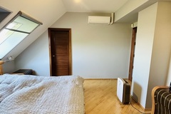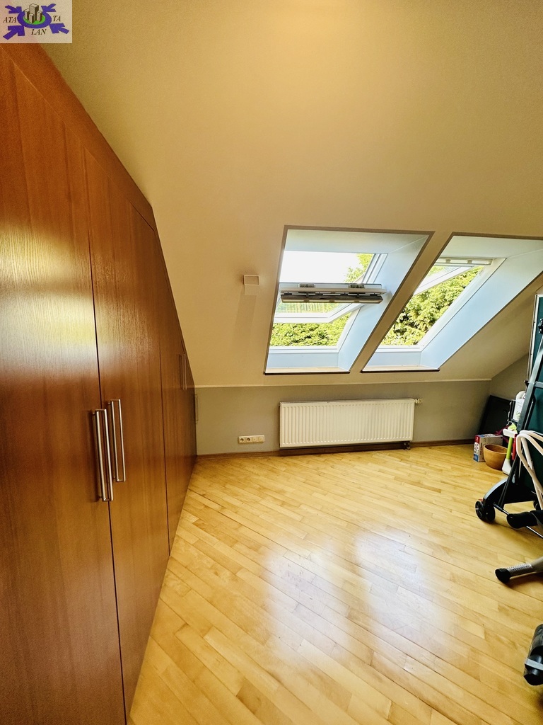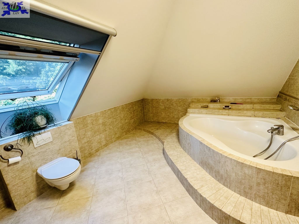 Szerokie schody prowadzą na piętro domu gdzie znajduje się 5 sypialni/ 10,74 m2, 12,86 m2, 13,68 m2, 13,95 m2, 18,85 m2/z czego jedna z sypialni ma prywatną łazienkę i garderobę. Dodatkowa łazienka z wejściem z hollu.