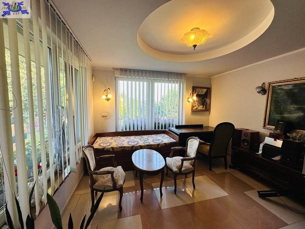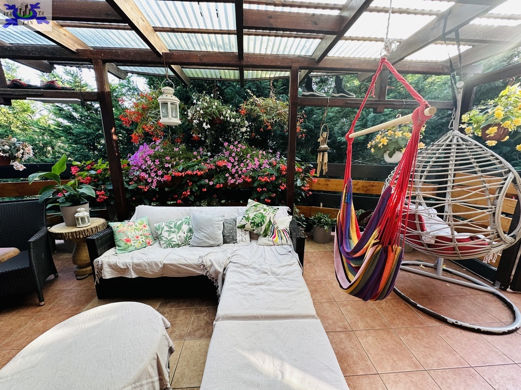 Rok budowy 2003. Pięknie zagospodarowania działka o pow. 1500 m2, liczne drzewa, nasadzenia, wydzielone miejsce do grillowania, studnia do podlewania ogrodu, domek z kominkiem. Teren ogrodzony, 2 bramy na pilota. Zewnętrzne rolety antywłamaniowe, rolety zaciemniające, fotowoltaika, system alarmowy. Garaż dwustanowiskowy.