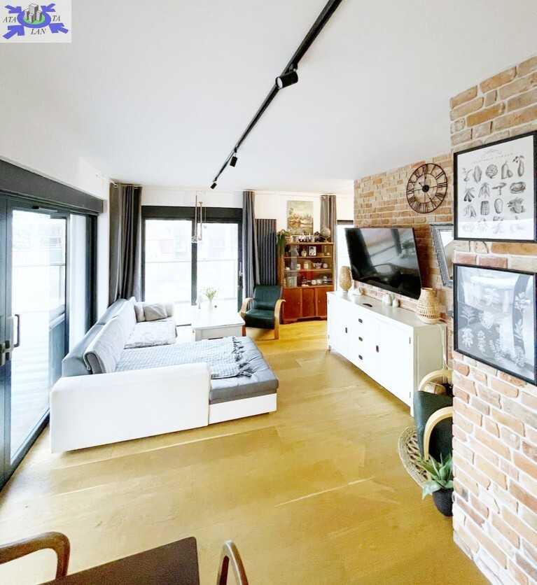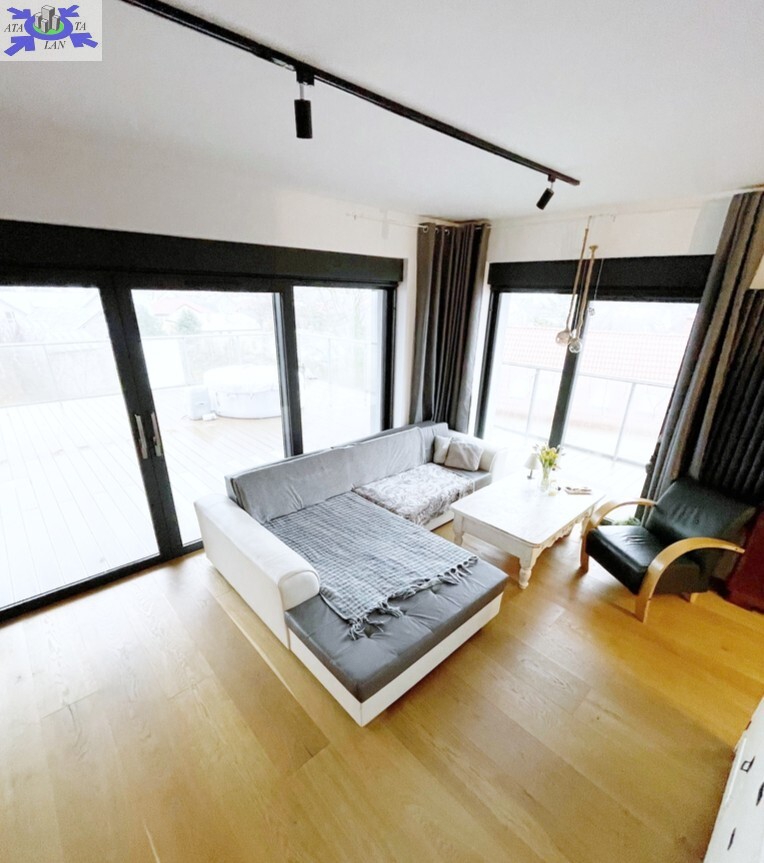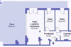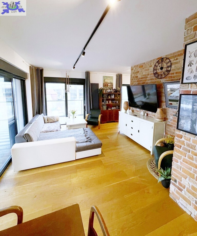 Apartament składa się z eleganckiego salonu, 2 sypialni, aneksu kuchennego oraz łazienki. Apartament znajduje się na 3 ( najwyższym) piętrze budynku, posiada taras o powierzchni 75m2m2 z widokiem na morze oraz miejsce postojowe w hali garażowej w podziemiach budynku.