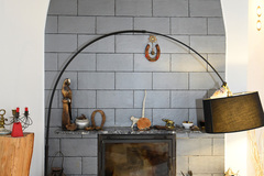 W pokoju działający kominek w oryginalnej zabudowie.