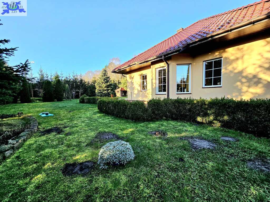 Oferujemy do sprzedaży dom wolnostojący z garażem, usytuowany w malowniczym zakątku Dobrej, bezpośrednio przy ścianie lasu. Nieruchomość położona jest na bardzo dużej działce, o łącznym metrażu około 4300 m2. Dom został wybudowany w 2008 roku z projektu ,,Dom pod Jarząbem (2G)". Powierzchnia użytkowa nieruchomości wynosi 148,9 m2, a całkowita 182,4 m2. Na parterze domu, znajdziemy otwartą kuchnię połączoną z salonem, z którego wychodzi się na duży, zagospodarowany taras i dalej na ogród, 3 sypialnię, łazienkę z WC, pomieszczenie gospodarcze z kolejnym WC oraz korytarz. Poddasze użytkowe aktualnie zamknięte i nieużytkowane (z możliwością zaaranżowania i zamieszkania). Ogrzewanie i ciepła woda zasilane z pieca gazowego. Dodatkowo, możliwość ogrzewania elektrycznego (zainstalowana podłogówka na całej powierzchni domu) oraz z kominka kaflowego. W cenie nieruchomości pozostają wszystkie zabudowy stałe wraz z umeblowaniem kuchennym i łazienkowym, reszta rzeczy do ustalenia. W bryle budynku, również garaż jednostanowiskowy oraz duży, zagospodarowany taras z pergolą, krzesłami i stołem. Największym atutem nieruchomości - lokalizacja - w malowniczym miejscu, pod samą ścianą lasu oraz bardzo duża działka (około 4300m2). Na jej terenie 2 duże szklarnie, krzewy z borówką amerykańską oraz oczko wodne z wieloma nasadzeniami. Podlewanie ogrodu sterowane elektronicznie. Cicha okolica, zapewniająca spokój i relaks jej mieszkańcom, a w sąsiedztwie jedynie zabudowa jednorodzinna i bliźniacza. Idealne miejsce dla osób ceniących ciszę, spokój oraz prywatność lub pod inwestycję, z uwagi na bardzo dużą działkę.