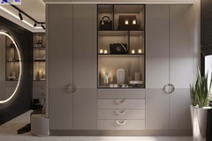 Dodatkowo, na antresoli o powierzchni 21,15 m2 znajduje się pokój kinowy o pow. 21,31m2 może również służyć jako dodatkowy pokój dla dziecka. W nowym projekcie został przekształcony w pojemną garderobę, stanowiąc idealne miejsce do przechowywania ubrań i akcesoriów.