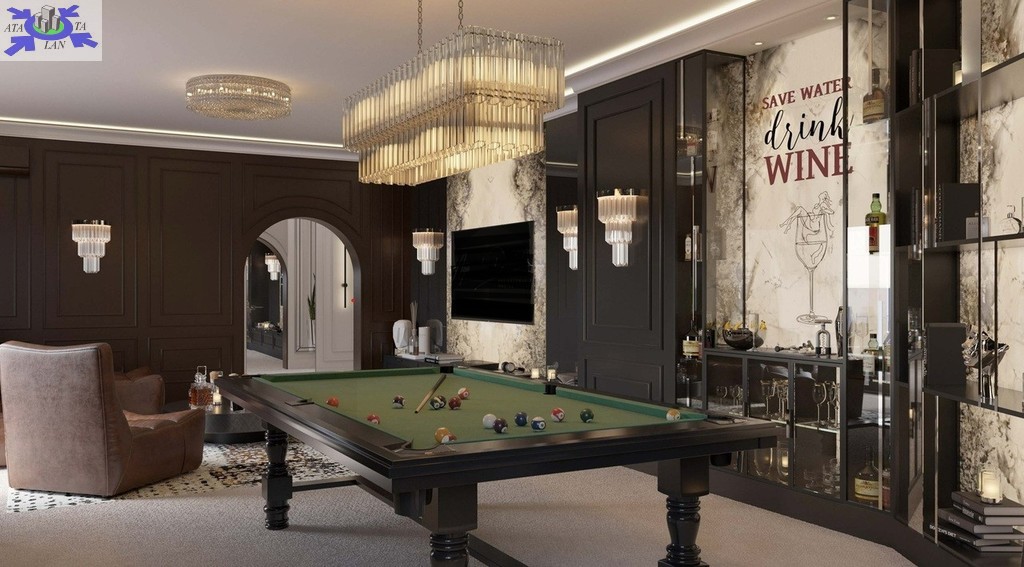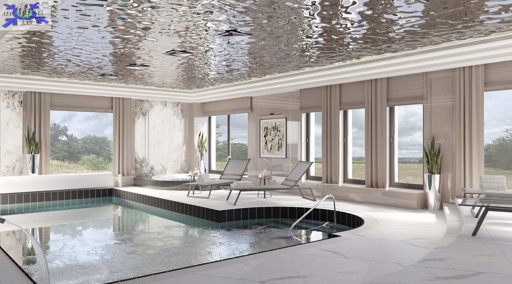 Rezydencja wyposażona jest w prywatny basen, saunę, jacuzzi oraz przestrzeń do ćwiczeń. Do tej strefy przechodzi się z jadalni przez przedsionek, który również prowadzi do części strefy rozrywkowej, czyli pokoju z bilardem. W strefie Spa znajdziemy imponujący basen o wymiarach niecki basenowej dł. 907 cm oraz sz. 403 cm. W pomieszczeniu znajdziemy również jacuzzi. Całe pomieszczenie ma 121 m2 oraz 290 cm wysokości w najniższym miejscu a w najwyższym 320 cm. Z tego pomieszczenia mamy dostęp do sauny o pow. 4,31 m2 i wys. 217 cm oraz do łazienki z WC o pow. 5,27 m2 i wys. 290 cm. Strefa Spa posiada liczne okna, co sprawia, że to miejsce jest świetnie doświetlone.