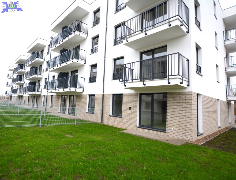 Nowoczesna architektura, kompleksowo zagospodarowany teren osiedla, chodniki, niskie nasadzenia, plac zabaw dla najmłodszych.