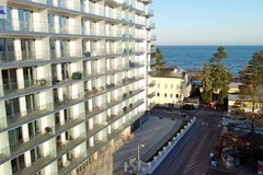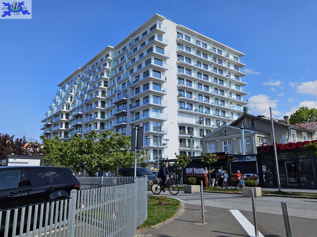 Apartament w Międzyzdrojach z widokiem bocznym na morze, zaledwie 100m od plaży. Apartament oddany do użytku w 2020r. Apartamentowiec, w którym się znajduje, to nowoczesny budynek bez barier, wyposażony w dwie windy przystosowane dla osób niepełnosprawnych, portiernię, halę garażową oraz lokale handlowo-usługowe w parterze.