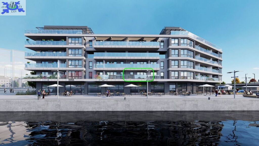 Mieszkanie posiada duży balkon od strony rzeki z widokiem na wodę i miasto.