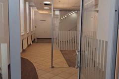Dwa przejścia dla pieszych "wchodzą " na wejście do lokalu .
