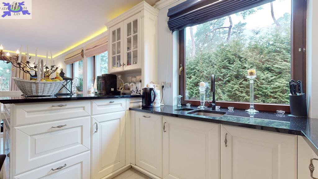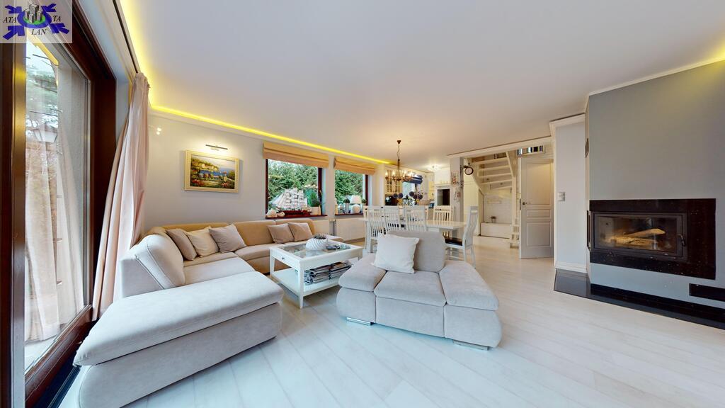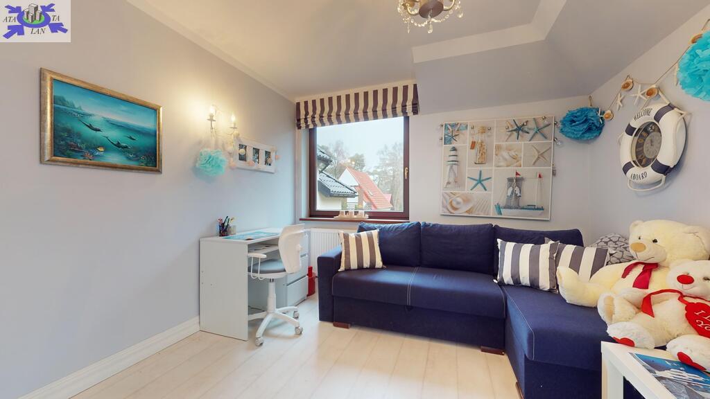Całość ogrodzona, wybudowana z wysokiej jakości materiałów, w dobrym stanie technicznym, położona na zagospodarowanej działce o wielkości 938 m2. Ogród od strony południowej z domkiem letniskowym dla dzieci, grillem murowanym oraz miejscem do biesiadowania. Teren zadbany z dużą ilości nasadzeń. Wszystko urządzone z klasą i z dbałością o każdy szczegół.