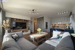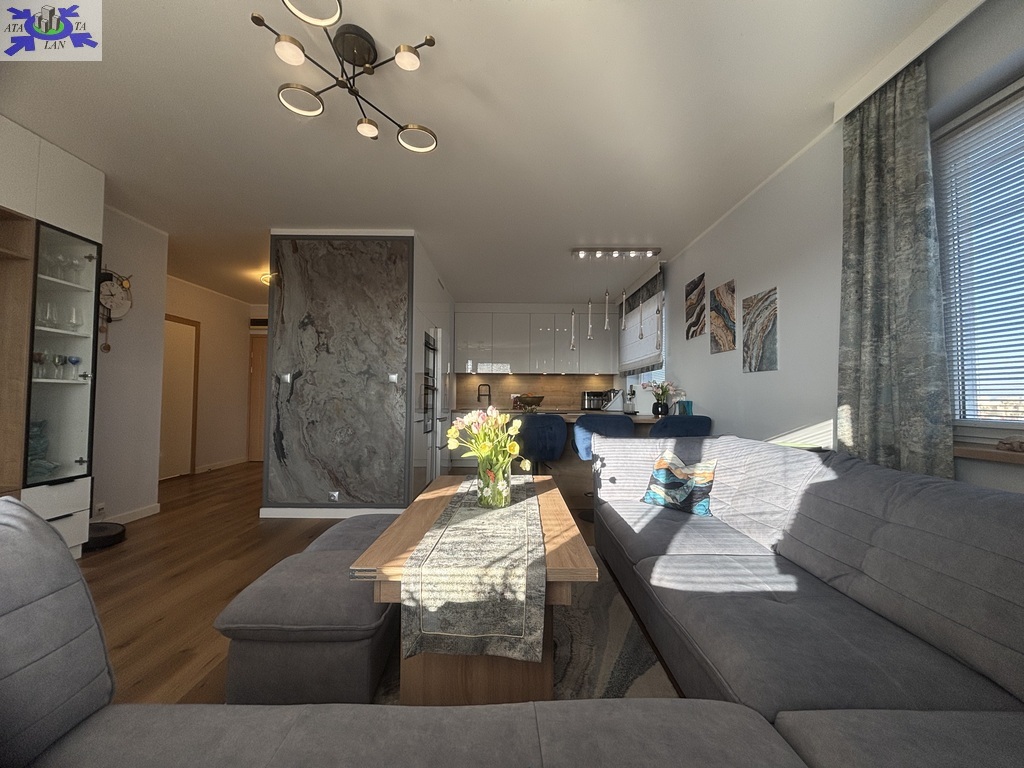 - pokoju dziennego połączonego z kuchnią z wyjściem na duży 12m2 balkon