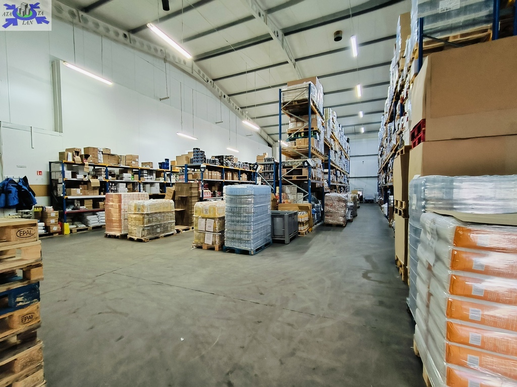 Dach i ściany hali magazynowej wykonane z płyt warstwowych. Posadzka betonowa, bezpyłowa.