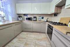 Kuchnia jest w pełni wyposażona w wysokiej klasy meble w zabudowie oraz wszystkie niezbędne sprzęty AGD - gotowa do użytkowania.