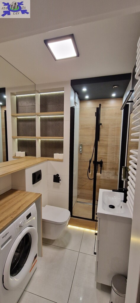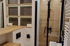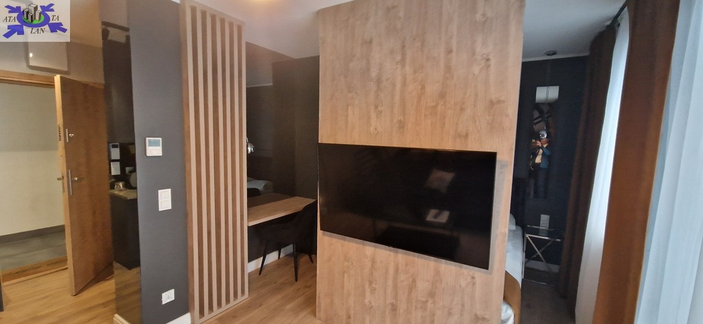 Nowocześnie urządzone, starannie wykończone mieszkanie z aneksem kuchennym, wydzielonym miejscem sypialnianym.