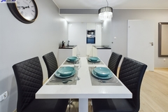 -Salon z aneksem kuchennym Jasny, przestronny salon z w pełni wyposażonym aneksem kuchennym, stworzonym z myślą o funkcjonalności i nowoczesnym designie.