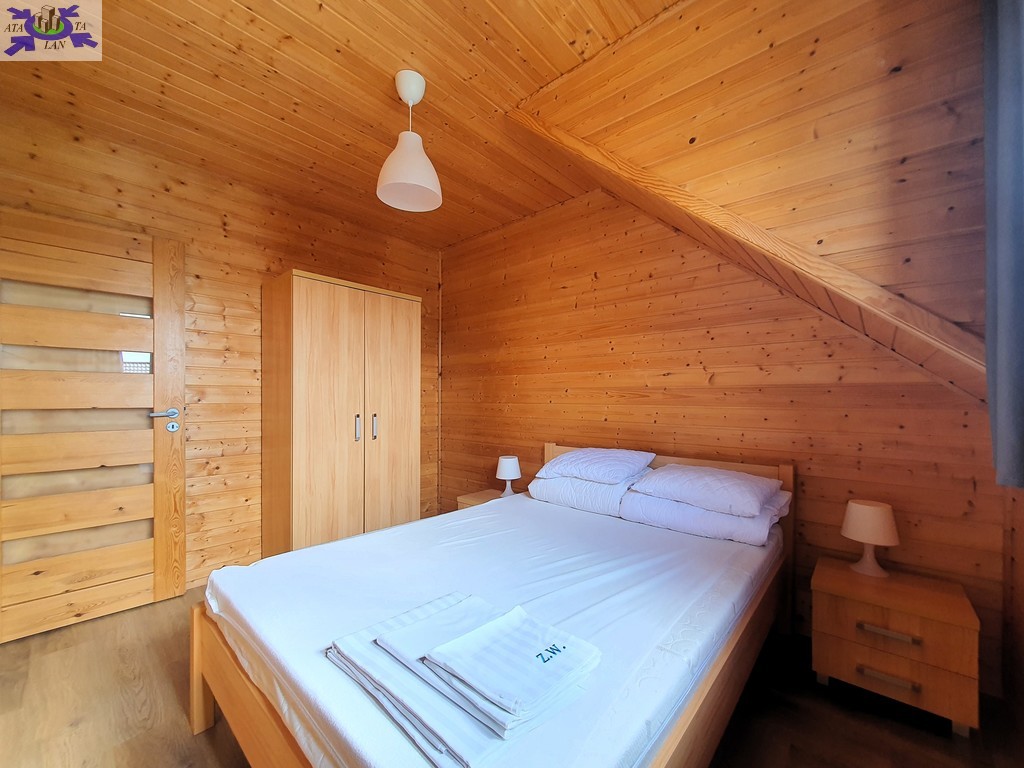 Budynek podzielony jest na 4 części, z których każda składa się z salonu z aneksem kuchennym i łazienką (parter) oraz dwóch sypialni (piętro). W każdym module może tu wygodnie wypoczywać 6 osób, a do ich wyłącznej dyspozycji na zewnątrz znajduje się stół piknikowy oraz grill betonowy. Dodatkowo na terenie posesji znajdziemy kącik zabaw dla dzieci oraz rowery.