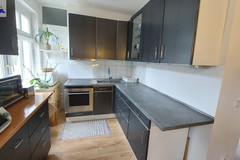 Dom położony przy jednej ze spokojniejszych ulic w Świnoujściu przy ul Grottgera. Bliźniak z cegły w dobrym stanie technicznym. działka ma kształt nieregularny, ogrodzona z przesuwną bramą. Na działce stoi garaż jednostanowiskowy. Na parterze jest przestronny przedpokój, piękny salon z kominkiem i z wyjściem na duży taras. Salon jadalnia i kuchnia tworzą jedną całość, tylko umeblowanie określa funkcję tych pomieszczeń. Na tym poziomie jest jeszcze sypialnia i dość duża łazienka. Piękne drewniane schody prowadzą na I piętro, gdzie są 3 sypialnie, niewielka kuchnia, łazienka i dodatkowe WC. Jest jeszcze poddasze, gdzie może być dodatkowy pokój. Pod całym budynkiem są duże, suche piwnice ( 4) z wyjściem do ogrodu. Ogrzewanie i ciepła woda z piecyka gazowego, urokliwy kominek daje ciepło w salonie i jadalni. Właściciele wymienili instalacje wodne i elektryczne. Niskie koszty utrzymania. Okolica spokojna. Oferta na wyłączność. Zapraszam