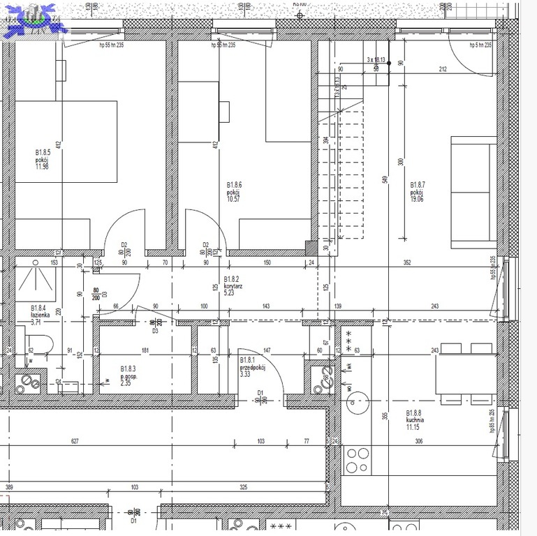 - pomieszczenie gospodarcze o pow. 2,35m2