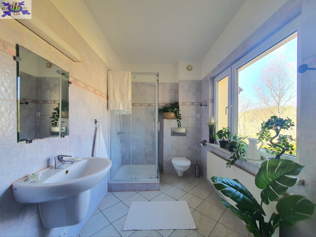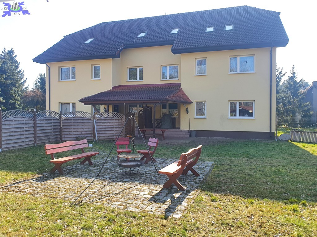 Na terenie posesji jest też osobny budynek gospodarczy z pralnią, garaż murowany dla 2 aut oraz altanka ogrodowa z paleniskiem.