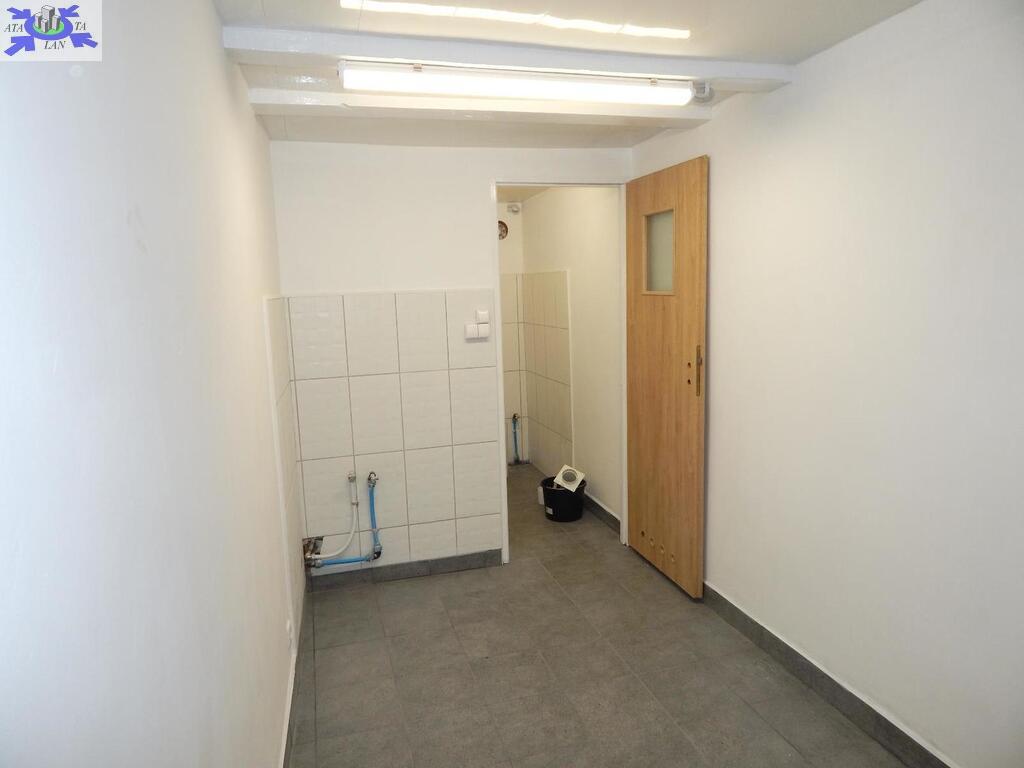 - zaplecze socjalne o powierzchni ok. 15 m2 (jedno pomieszczenie mogące służyć jako biuro albo aneks kuchenny oraz osobne pomieszczenie WC z kabiną prysznicową.