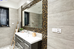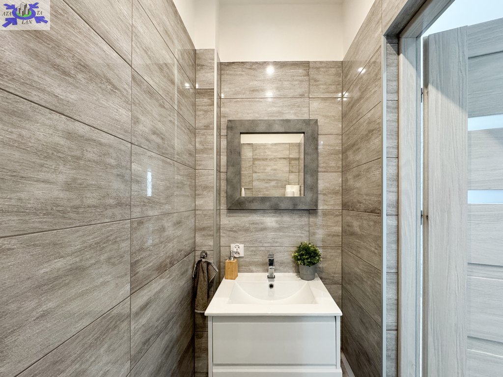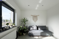 Dwie sypialnie, przedpokój, łazienka z prysznicem oraz osobne WC, pomieszczenie gospodarcze (kotłownia, pralnia, suszarnia)- stanowią drugą część domu.