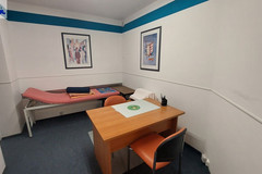 W centrum miasta na jednym z osiedli znajduje się samodzielny budynek parterowy, który jest przedmiotem najmu. Pełnił on funkcję medyczną, były tam gabinety lekarskie, poczekalnia, gabinet zabiegowy, pokoje do masaży i rehabilitacja. Jest możliwe prowadzenie tam innej działalności. Dwa niezależne wejścia, brak barier architektonicznych, łatwy sposób poruszania się po obiekcie. Przy wejściu znajduje się otwarte pomieszczenie pełniące rolę recepcji, obok jest jedna z 3 toalet. Wygodny korytarz prowadzi do 7 niezależnych gabinetów, każdy wyposażony i umeblowany, dodatkowy pokój pełnił rolę pokoju zabiegowego, są jeszcze 3 pomieszczenia z kabinami, oddzielonymi od siebie lekkimi ściankami . Cały obiekt utrzymany bardzo dobrze. Okna PCV, rolety zewnętrzne. Ogrzewanie i ciepła woda podgrzewana elektrycznie. Zimą rachunki za prąd wynosiły 380 Euro miesięcznie. Lokal idealnie nadaje się pod usługi medyczne, ale jest możliwość wynajęcia go w innym celu jako biura, branża kosmetyczna, rehabilitacyjna. Jest do wydania od zaraz. Zapraszam