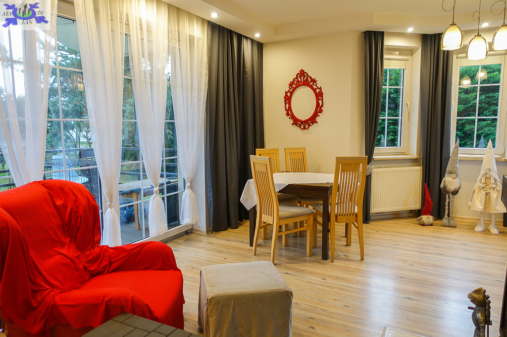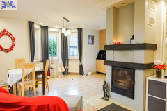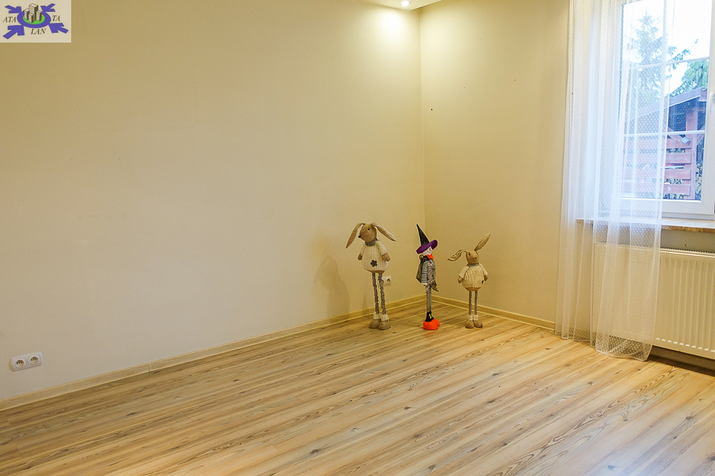 PARTER salon 24 m2 z wyjściem na taras drewniany o pow. ok. 15 m2 i dalej do pięknie utrzymanego ogrodu z drzewami i krzewami oddzielającymi ogród od ulicy i sąsiednich budynków. Salon otwarty na aneks kuchenny o powierzchni 6 m2 z nowoczesną zabudową i urządzeniami AGD dodatkowo kominek z płaszczem wodnym. 2 pokoje 14,4 m2 i 15,3 m2. Hall 5,39 m2, łazienka 5,12 m2, klatka schodowa 5 m2, sień 3,69 m2. W łazience wanna i toaleta z umywalką. Ogrzewanie elektryczne i kominkowe.