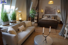Na sprzedaż pięknie urządzony apartament z "duszą" o pow. 55,8 m2 (powierzchnia całkowita ok. 63 m2) położony na czwartym piętrze czteropiętrowej kamienicy w Centrum Szczecina. Adaptacja z 2012 r. - użytkowane od 2015 r - wszystkie instalacja praktycznie nowe. Mieszkanie w pełni wyposażone ze szczególną dbałością o detale. Duży pokój w którym mamy część salonową oraz sypialnianą. Na wyposażeniu sofa, łóżko sypialniane, kredens, komoda w mieszkaniu może zostać praktycznie wszystko widoczne na dokumentacji zdjęciowej. Dodatkowo garderoba. Kuchnia w stałej zabudowie na wyposażeniu sprzęt AGD (zabudowana lodówka, piekarnik, mikrofalówka, okap) w części jadalnianej stół z krzesłami. Łazienka z kabiną prysznicową w gustownej glazurze i terakocie. Możliwość korzystania z poddasza strychowego. Zapraszam na prezentację tej nietuzinkowej oferty.