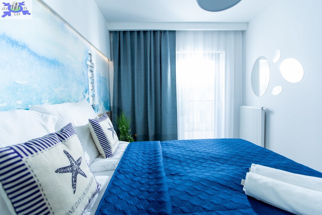 Apartament jest nowocześnie wykończony, z przestronną łazienką oraz kompletnie wyposażonym i umeblowanym aneksem kuchennym .
