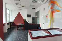 Lokal posiada duże aluminiowe witryny wystawowe (z antywłamaniowymi szybami).