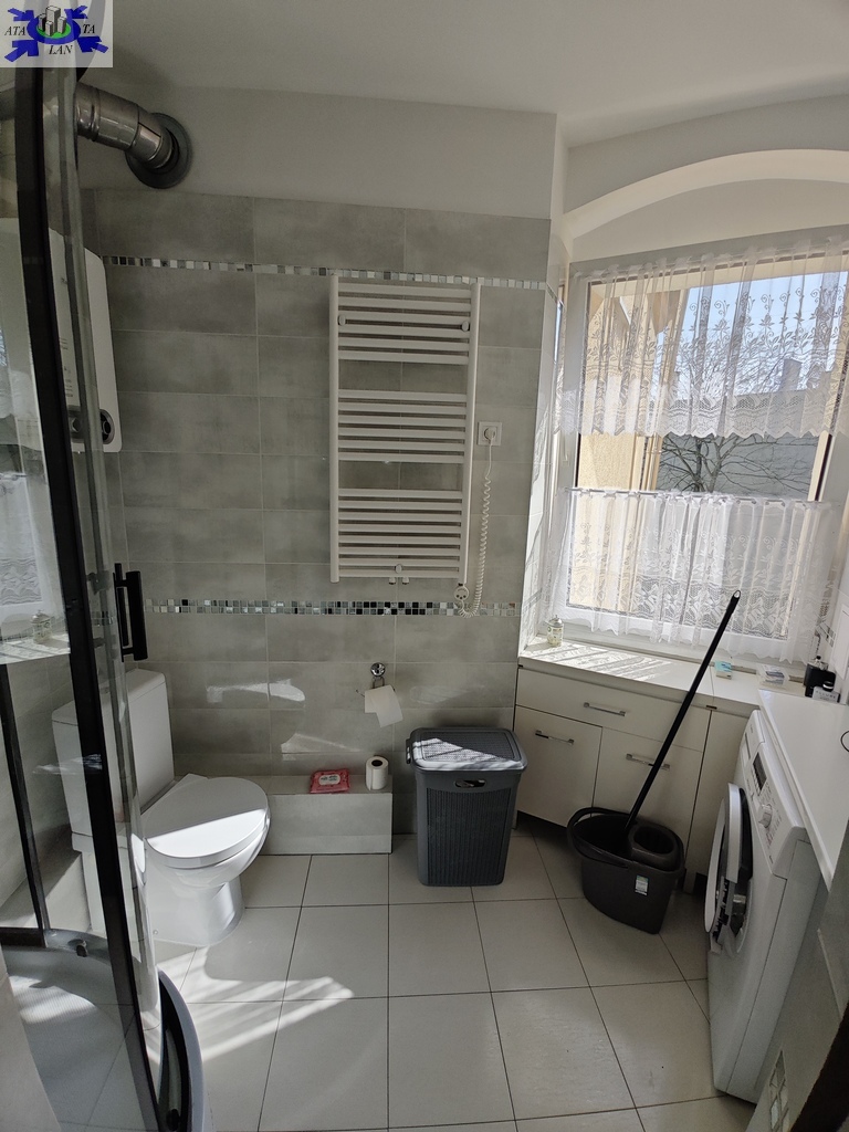 Łazienka Wyposażona w kabinę prysznicową i WC, przemyślana pod kątem komfortu użytkowania.