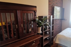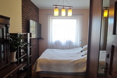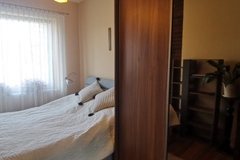 sypialnia o pow. ok. 10 m2 z zabudową szafy, na podłodze deski, ściany gładzone malowane (od strony ogródków - zachód)