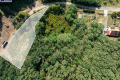 Nieruchomość niezabudowana otoczona jest z trzech stron lasem i krzewami. Dojazd drogą asfaltową, następnie drogą utwardzoną szutrową.