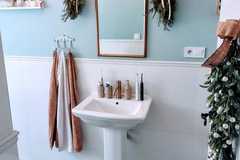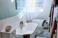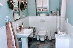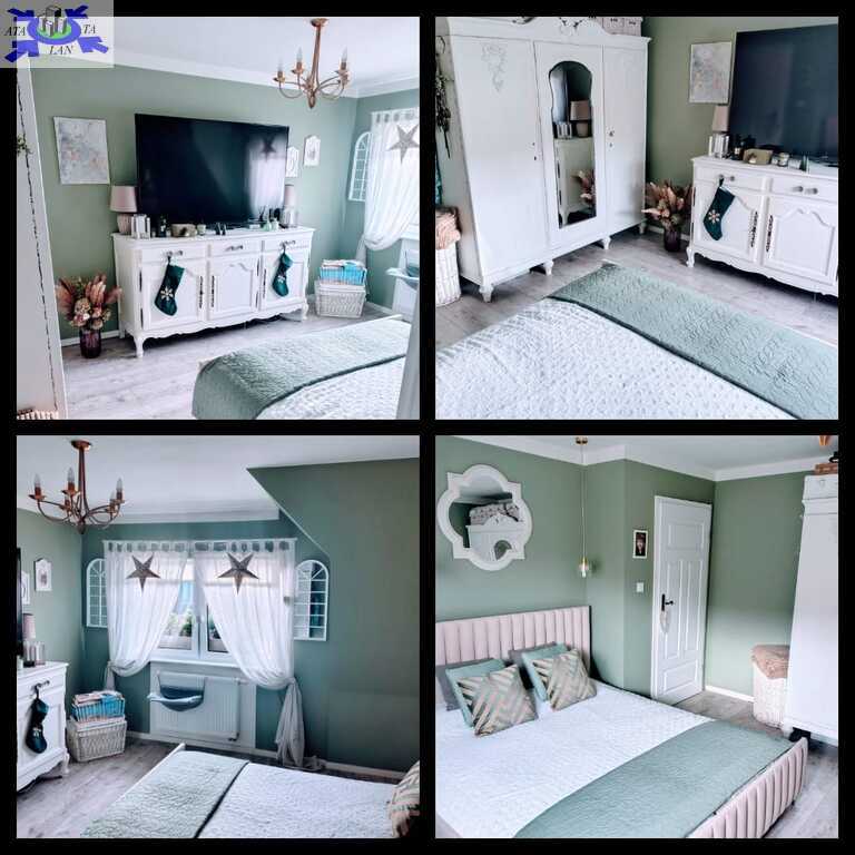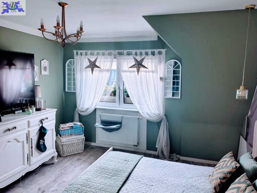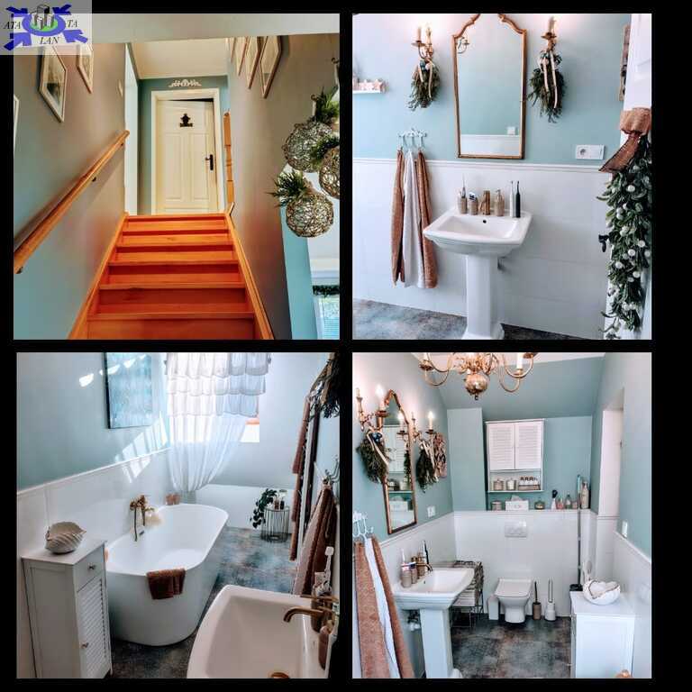 Na piętrze znajduje się przestronna łazienka z wanną oraz dwa ustawne pokoje, które mogą pełnić funkcję sypialni lub pokoi dziecięcych.