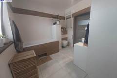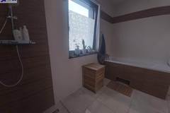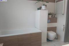 Przestronna łazienka z wc, wyposażona zarówno w wannę, jak i prysznic, co gwarantuje wygodę użytkowania.