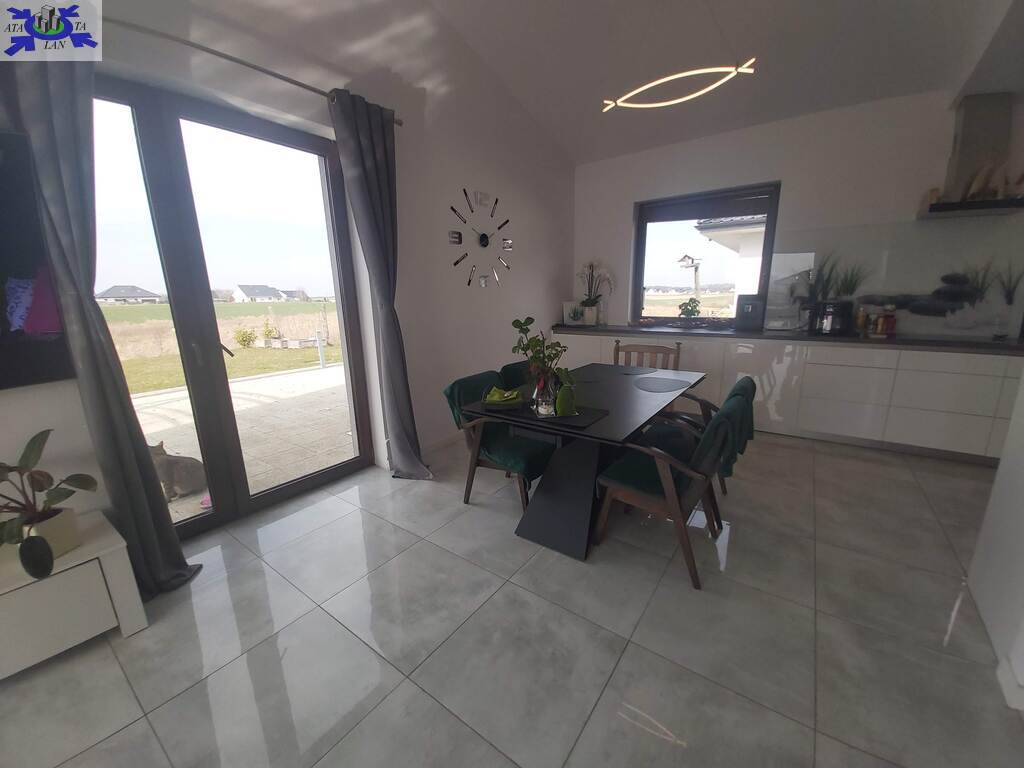 Jadalnia połączona z salonem, tworzy otwartą przestrzeń, która sprzyja spotkaniom rodzinnym i towarzyskim.