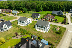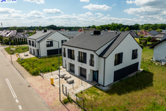 Ponadto zamontowano okna Gelan trzyszybowe wraz z elektrycznymi roletami, brama garażowa wraz z napędem elektrycznym firmy Wiśniowski oraz drzwi wejściowe firmy ERKADO Thermo 64, wideodomofon.