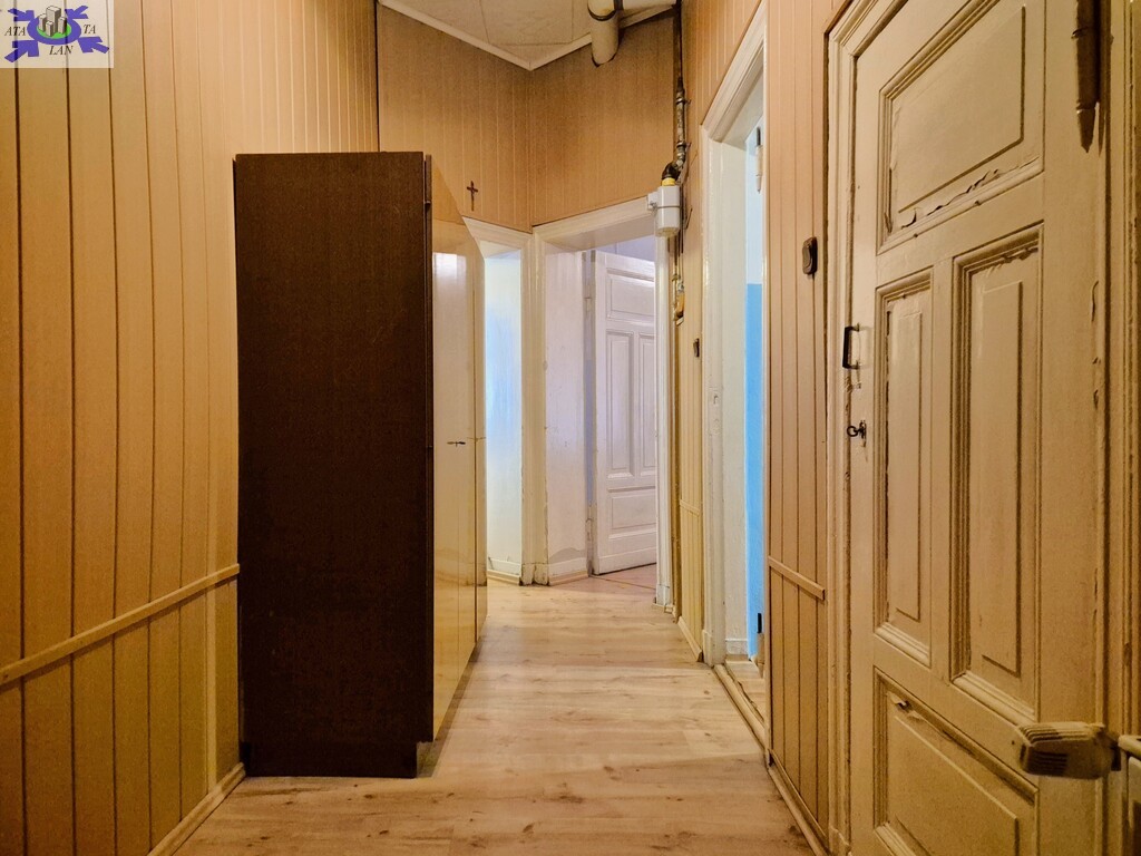 * W przedpokoju znajdują się wejścia do kuchni (z której przechodzi się do łazienki) oraz do dwóch pokojów. Jeden z nich jest pokojem przechodnim z którego wchodzimy do trzeciego pokoju. Obecnie w przedpokoju znajduje się również wejście do skrytki - pomieszczenia, które mogłoby być zaaranżowane na spiżarnię, schowek na rowery lub - w przypadku kancelarii lub biura - pomieszczenie na dokumenty. Możliwość przywrócenia tradycyjnego układu pomieszczeń.