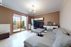 - salon z aneksem kuchennym i wyjściem do ogródka
