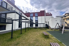 - Strefa rekreacyjna dla mieszkańców zlokalizowana na zielonym stropodachu, nad kondygnacją podziemną od wnętrza inwestycji z małym placem zabaw oraz ławkami i stolikami usytuowanymi pod zielonym tarasem