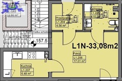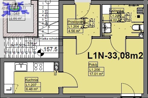 Lokal mieszkalny o pow. użytkowej 33,08 m2 składa się z następujących pomieszczeń