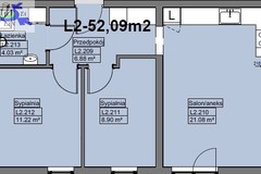 Lokal mieszkalny o pow. użytkowej 52,09 m2 składa się z następujących pomieszczeń