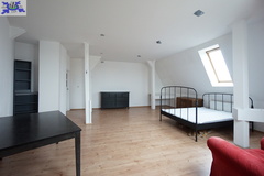 Standard do zamieszkania. Na ścianach gładzie, na podłogach panele, okna częściowo połaciowe, częściowo PCV.