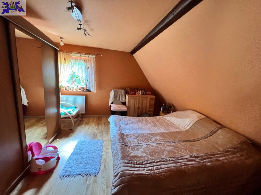 W skład domu wchodzą dwa poziomy na których znajdują się 4 pokoje, oddzielna kuchnia, łazienka, przedpokój i ganek.