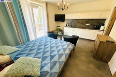 - salon z aneksem kuchennym (18 m2) i wyjściem na taras (ok. 8m2),