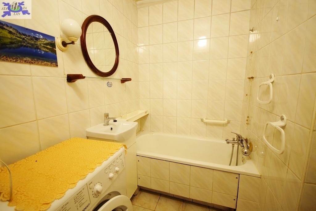 - Łazienka - 3 m2 z wanną, pralką, umywalką i WC